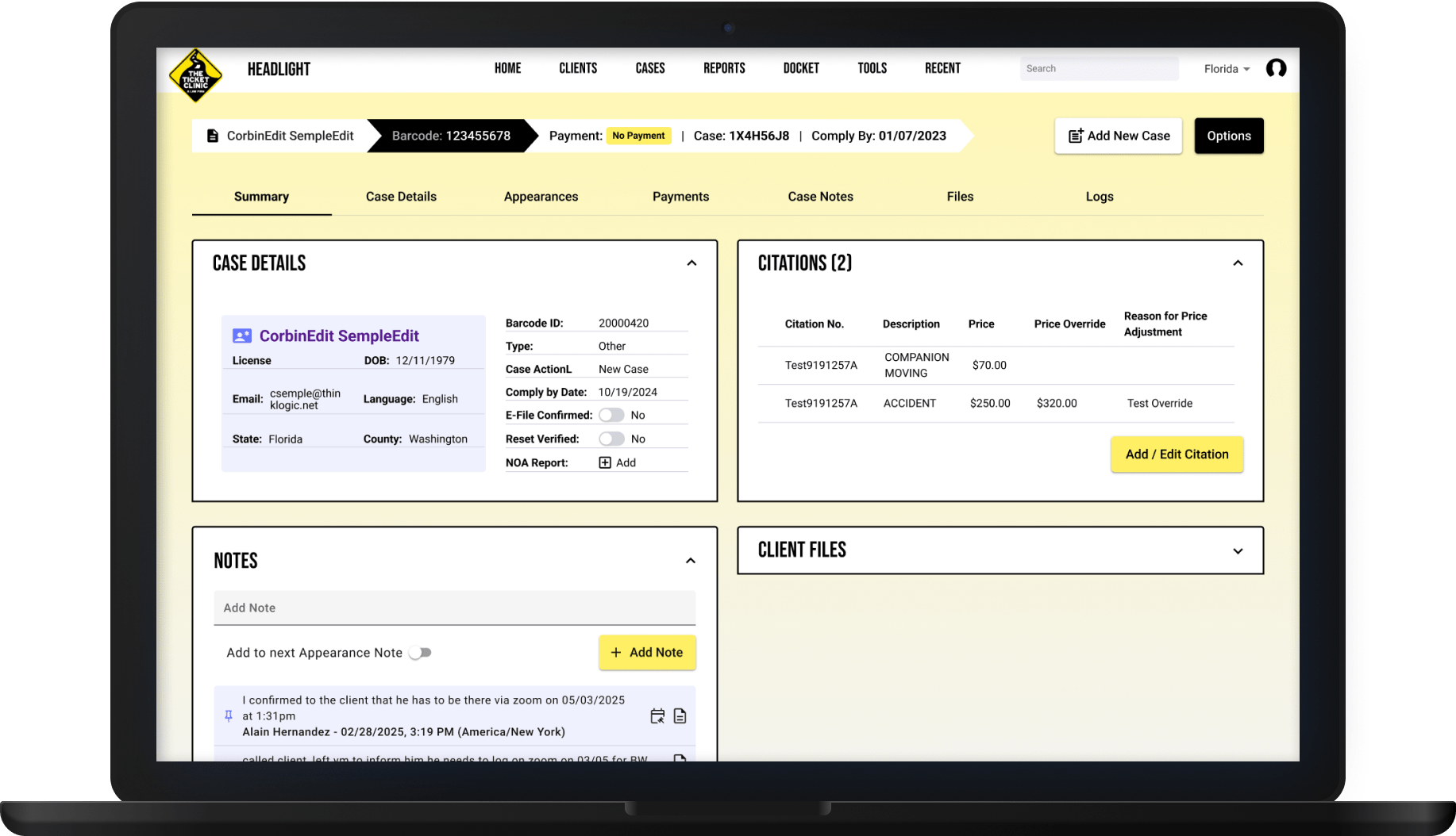 After the successful California launch in late 2023, The Ticket Clinic aimed to extend the Headlight platform to new regions with differing legal and operational requirements. The Florida and Georgia expansions demanded complex feature development, data migration of millions of legacy records, and region-specific logic the client hadn’t fully documented — all without interrupting active operations in California.